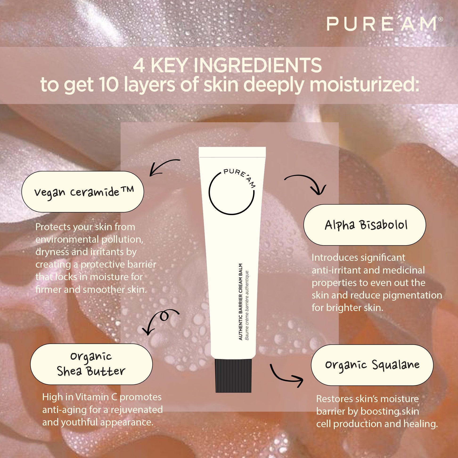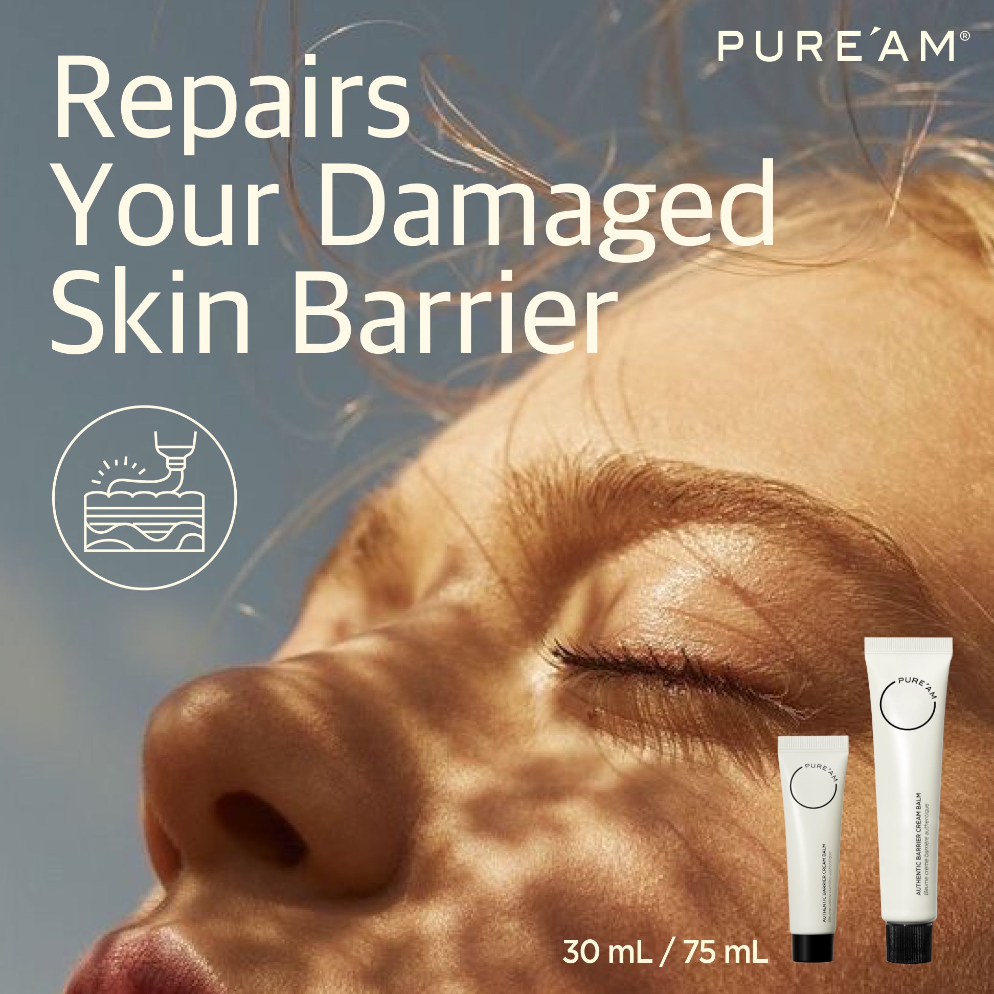 PURE'AM Authentic Barrier Cream Balm is a rich, restorative moisturizer designed to deeply nourish and repair weakened skin barriers.