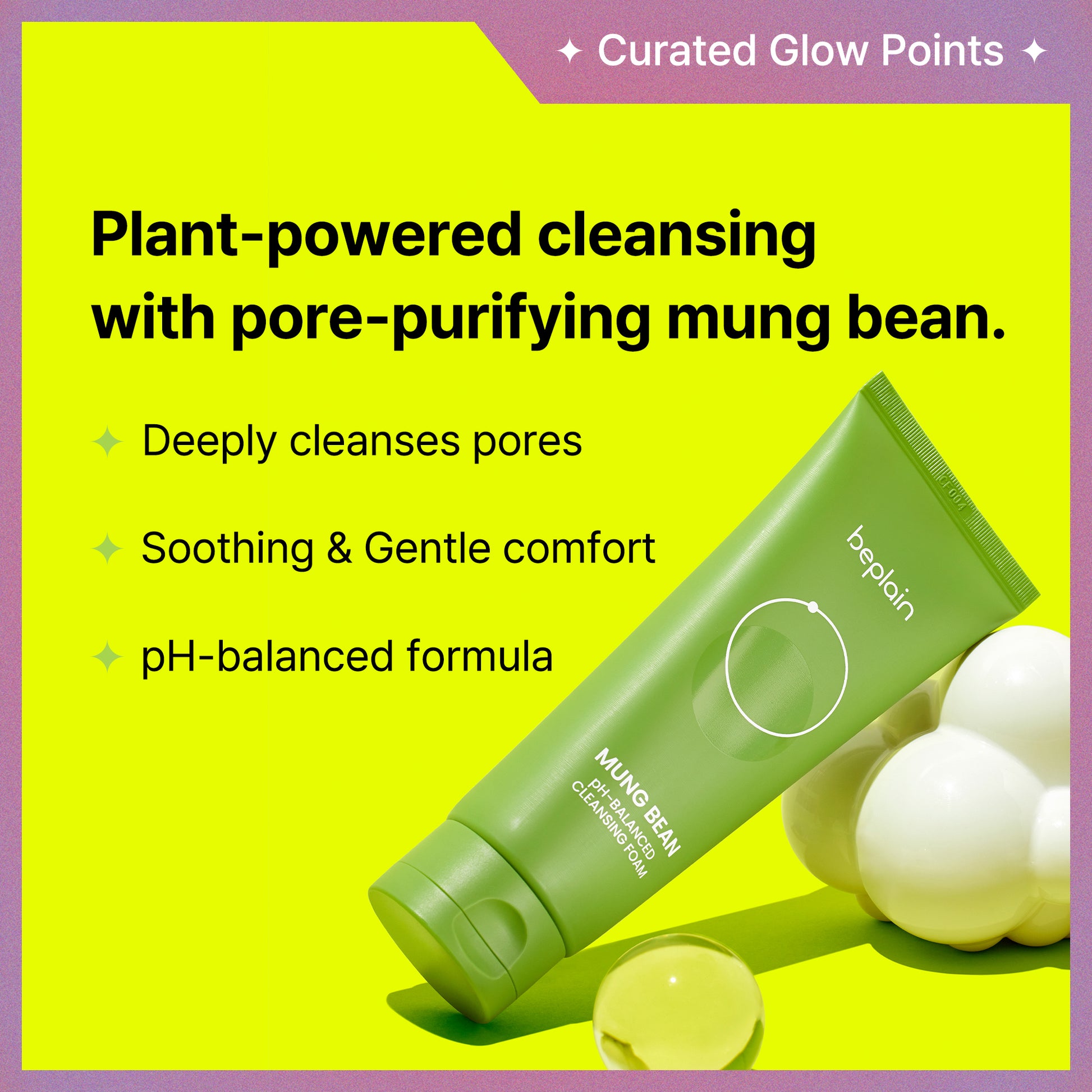 🟢Plant-powered cleansing with pore-purifying mung bean.