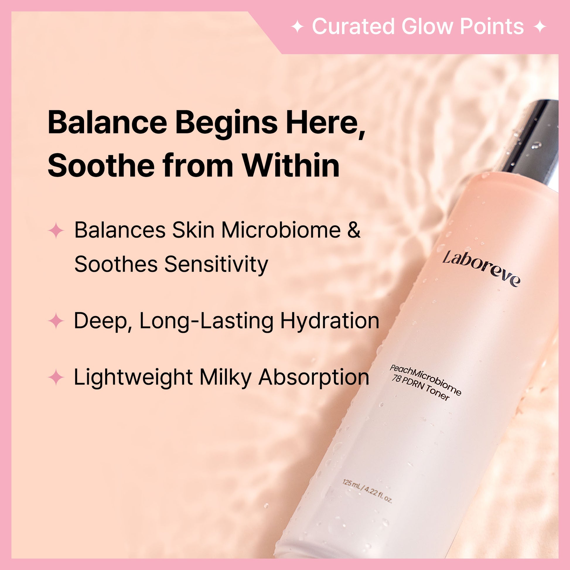 This essential duo utilizes a peach-derived microbiome and PDRN to balance the skin's ecosystem and create the optimal pathway for intense renewal. By prepping with the PDRN Toner, the EGF Serum can deliver its maximum firming and barrier-reinforcing benefits, ensuring a consistently calm, supple, and youthful glow.